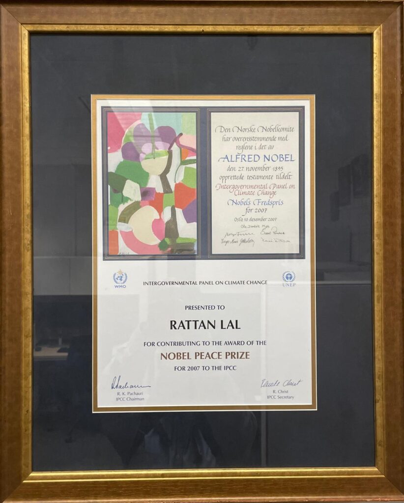 Dr. Rattan Lal’s pioneering research has profoundly influenced both agricultural sustainability and global climate policy. His lifelong dedication to advancing soil science has helped establish soil management as a cornerstone of strategies to mitigate climate change and ensure food security. In recognition of his contributions, he was one of the recipients of the Nobel Peace Prize in 2007 for his role in the Intergovernmental Panel on Climate Change (IPCC) reports, which emphasized the critical importance of soil carbon in regulating the Earth’s climate system.