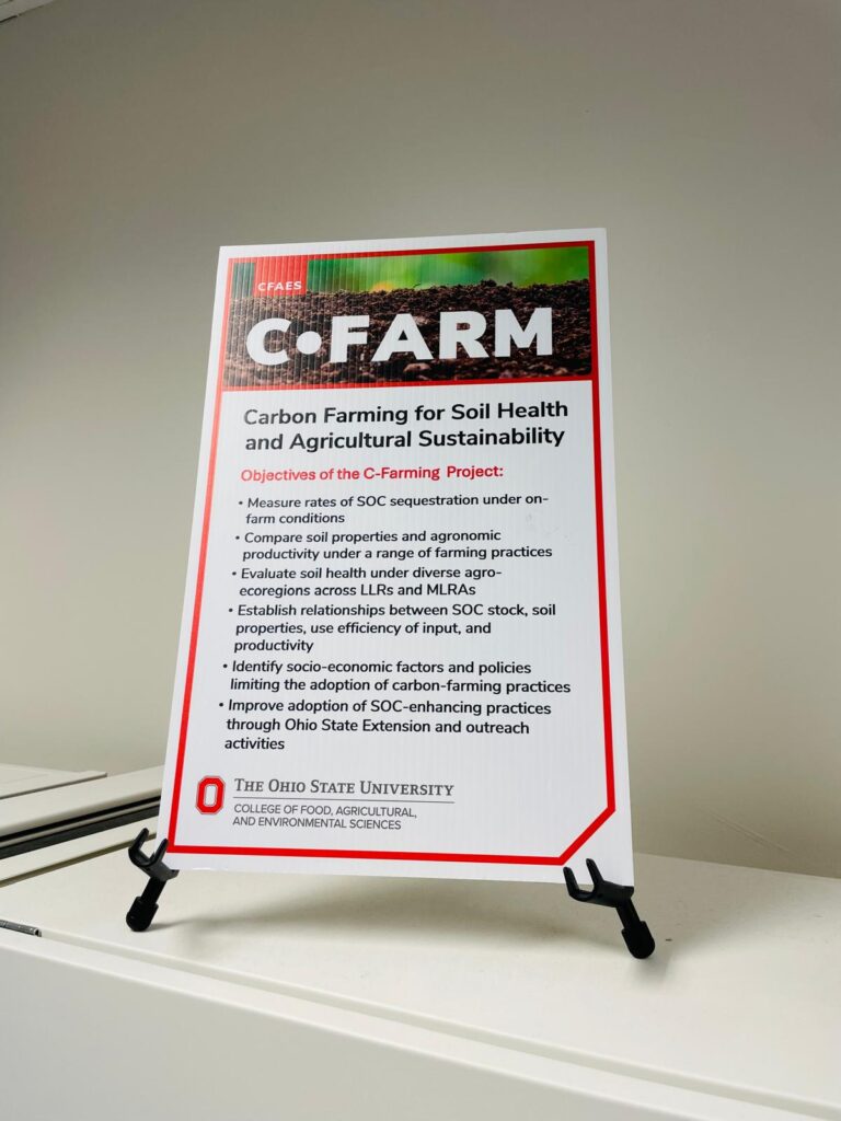 Among the Center’s flagship initiatives is C-FARM (Carbon Farming Project), which evaluates carbon farming practices in real-world field conditions to measure how soils can capture and store atmospheric CO₂. Funded by the USDA Agricultural Research Service and the Foundation for Food & Agriculture Research (FFAR) under Grant No. 22–000279, Enhanced Soil Carbon Farming as a Climate Solution, and administered by The Ohio State University, the project links cutting-edge research directly with farmers, ranchers, and policymakers. While the content of the research is the responsibility of the investigators, the financial support highlights the national and global urgency of developing soil-based climate solutions.